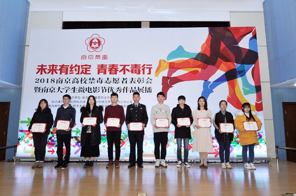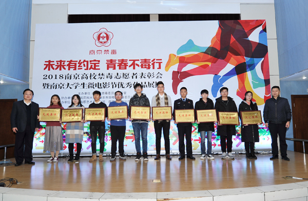 表彰会上,我校橄榄绿青年志愿者服务队因长期以来坚持利用公安专业特色开展禁毒宣传进校园活动的突出表现被评为2018年度南京高校大学生禁毒志愿工作“先进集体”,侦查1705区队陈志均同学因一年多来在禁毒宣传活动的积极参与和突出成绩被评为2018年度南京高校大学生禁毒志愿工作“十佳禁毒志愿者”。