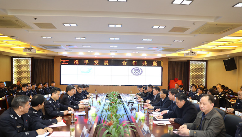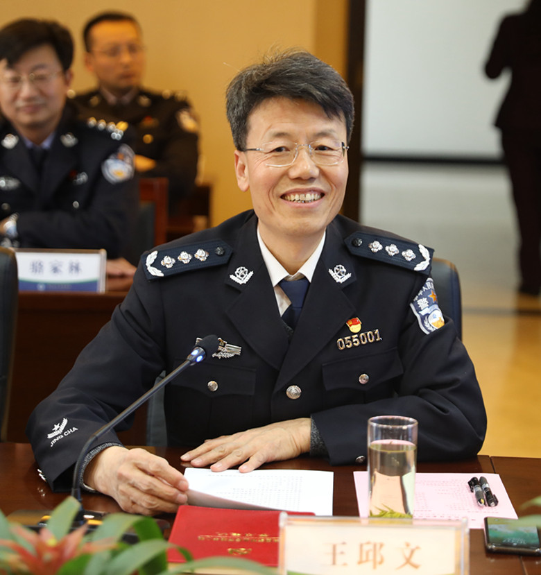 王邱文在讲话中指出,非常高兴能与南京信息工程大学开展全方位深度合作,也非常感谢李北群校长在新年伊始就带队亲临学校传经送宝。南京信息工程大学近年来发展迅速,干事创业的精神和开放办学的思路特别值得我们认真学习借鉴。我校目前正处于转型的关键时期,如何适应新时代公安工作和公安队伍建设的新要求,在服务生态文明、构建国家安全体系、保卫我国生态环境安全、维护生态环境秩序中找到自己的位置和发展机遇,探索出行业特色型高校内涵式、高质量发展的路径。这方面,南京信息工程大学给我们树立了良好的榜样,提供了丰富而宝贵的经验。我校要秉持真诚学习的态度,继续深化两校合作,不断激发发展潜力,为建设特色鲜明的高水平警察大学而不断努力。