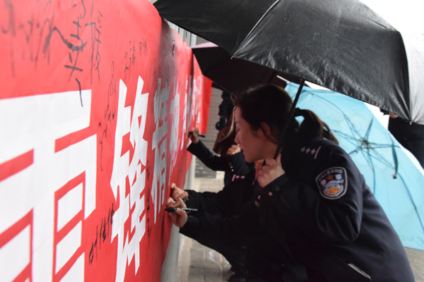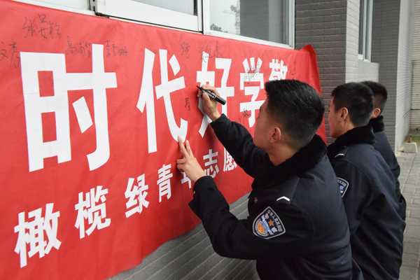 签名活动中,师生们踊跃地在印有“弘扬雷锋精神,争做新时代好学警”的横幅上签名,为践行雷锋精神写下了庄严的承诺。校领导也参与到签名活动中来,并对同学们的志愿服务活动给予指导。志愿者在活动现场发出号召:追忆雷锋精神,书写新时代雷锋故事,传递中国青年青春正能量。