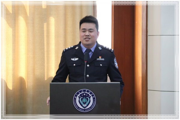 李树干是江苏省宝应县公安局氾光湖派出所社区民警,《永不打烊的警务室》中的主人公。2006年11月,被评为全国优秀人民警察;2014年1月,被省公安厅、省委宣传部授予首届“江苏最美警察”荣誉称号,并记个人一等功;同年6月,被中央文明办选入“中国好人榜——敬业奉献好人”;2014年11月,荣获第五届全国“我最喜爱的人民警察”特别奖,被公安部授予全国公安系统二级英雄模范;2016年3月,被中宣部确定为全国岗位学雷锋标兵;2018年3月,荣登《环球人物》杂志;2018年12月,被江苏省委宣传部授予江苏“时代楷模”荣誉称号。李树干警官分享了从警29年来的岗位故事,讲述了一番警民鱼水的深深情谊。他说,穿上警服不忘自己是农民,脱下警服不忘自己是警察。做好公安工作需要注意三点:一要放下架子,走到群众中去;二要开动脑子,想在群众前面;三要选对路子,靠着群众撑腰。他嘱咐同学们工作之后要不忘当初报考警校的那份初心,牢记当个好警察的梦想和使命。