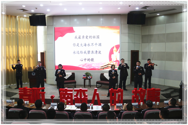 分享会前,同学们在小号、圆号、长笛、小提琴和钢琴等多种乐器的演奏下,完成了快闪歌曲《我和我的祖国》。音符里涌动着浓浓的爱国情愫,节拍里跳动着深深的爱国情怀,表达了南森学子喜迎建国70周年的激动心情。