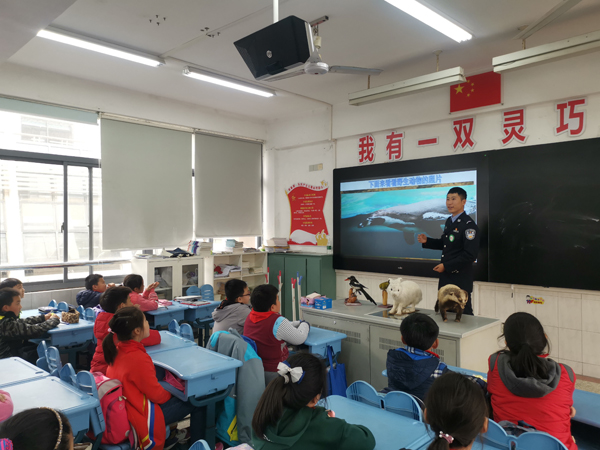 3月29日,橄榄绿青年志愿者服务队的志愿者们来到位于玄武大道的北京东路小学阳光分校进行野生动物与保护宣传教育。