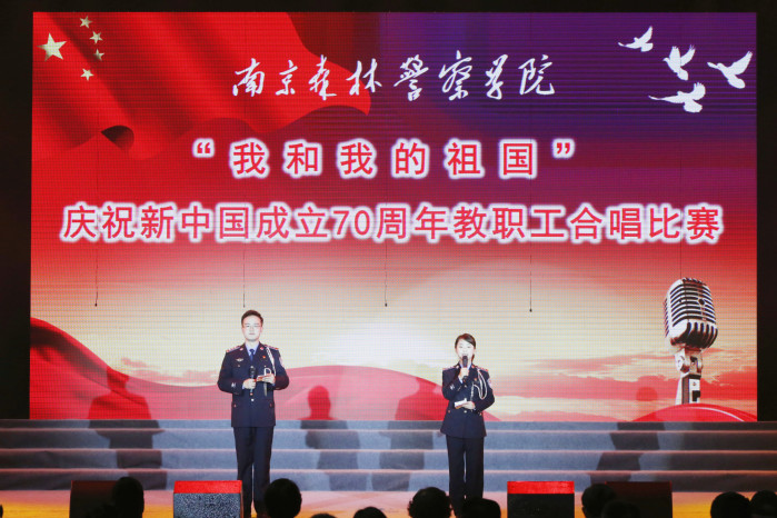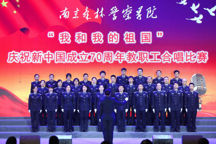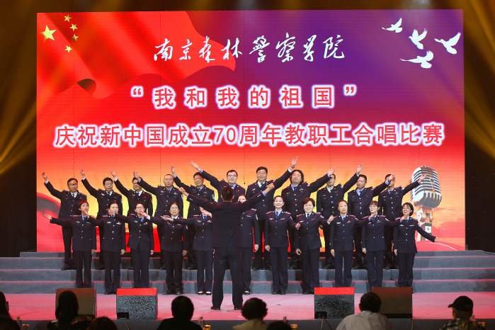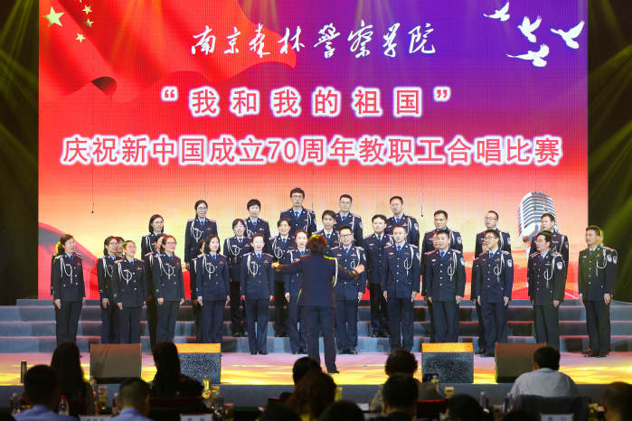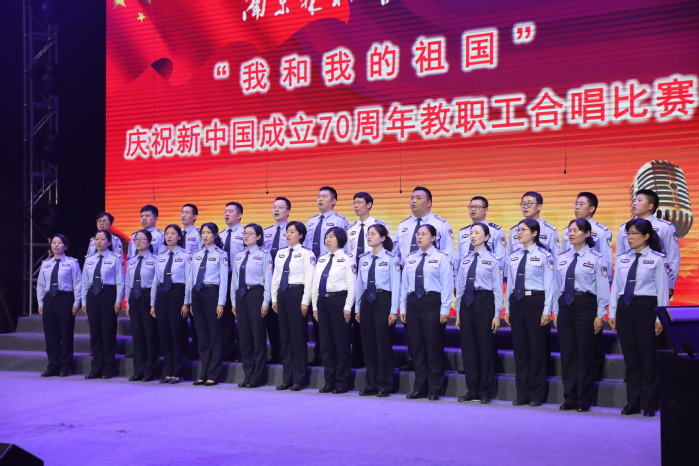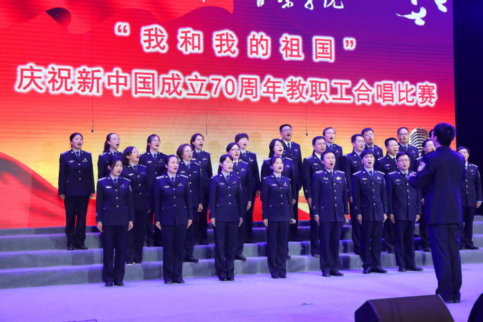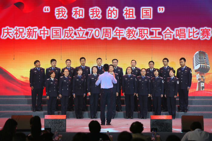 比赛在《不忘初心》的歌声中拉开帷幕,10个参赛队伍先后表演固定曲目《人民警察警歌》和《打靶归来》《弹起我心爱的土琵琶》《我和我的祖国》《歌唱祖国》《国际歌》《当那一天来临》《我们走在大路上》《大中国》《绒花》等自选曲目。每首参赛歌曲经过或沉稳庄严、或清脆刚健、或高亢激昂的深情演绎,唱出了我校教职工对新中国深沉的爱。