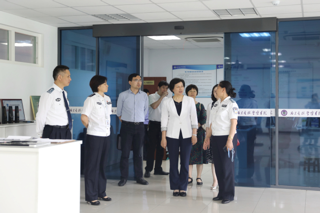 座谈会后,杨白英主席一行参观我校刑事科学技术学院与信息技术学院实验室。