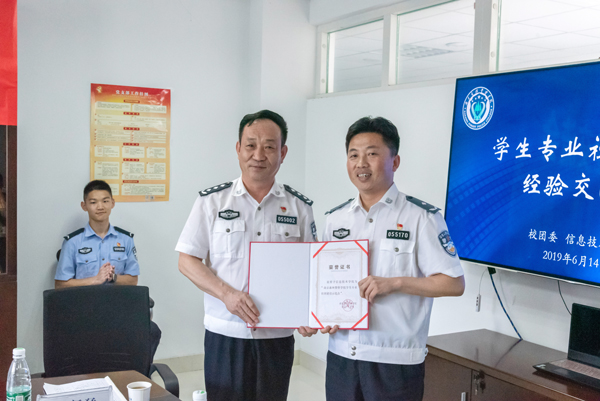 张高文校长代表学校为信息技术学院颁发了“南京森林警察学院学生专业社团建设示范点”证书。