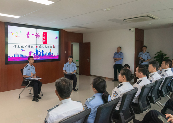 交流会开始前,参会人员参观了信息技术学院的电子取证工作室等六个专业社团活动阵地,观看了“青·诉”工作坊第二期活动之区队长的烦恼,网安1703区队长王振昊同学讲述了他作为区队长在大一、大二时期所经历的不同的烦恼。