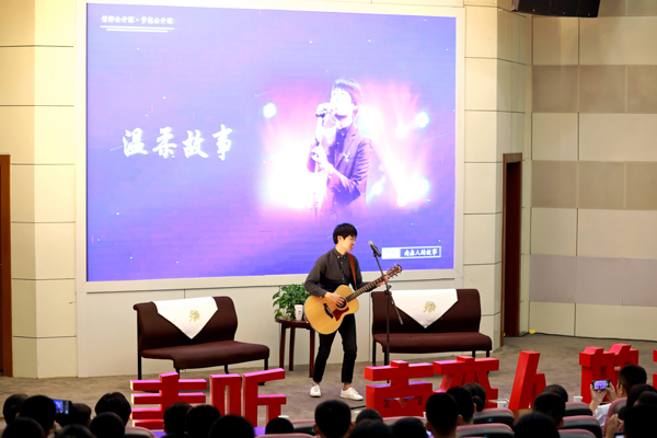 在互动访谈间隙,倍倍为全场师生献唱了“我会怀念此刻的我们”“温柔故事”和“春风十里”。在倍倍的故事里我们似乎看到了他成长的不易、奋斗的艰辛和对梦想的执着。只要有梦想,心中有阳光,脚下就一定有力量,人生的旅途中就一定会处处“春风十里”。把所有的春天都揉进一个清晨吧,把所有停不下的言语变成秘密关上门吧。南森学子停不下来的言语就是祝福鹿先森乐队越来越好,祝福倍倍越来越好,开心快乐!