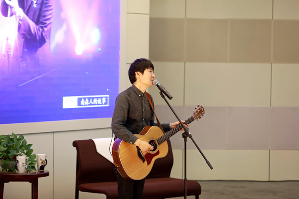 分享会的互动访谈主题采用了鹿先森乐队的三首歌名,主题一为“很久以前”,以“很久以前”开头,用三句话讲一个故事;主题二为“你住在我心里的原因”,这个“你”可能是一首歌或一位歌手,曾经对我们的成长有着重要影响;主题三为“一场雨落下来要用多久”,如果这场雨是梦想,在它落下来之前我们需要不断努力、坚持与等待。倍倍和台下同学们真诚地分享着专属于彼此的人生故事,那些或美好或忧伤或无助或奋进的生而为人的复杂情感与过往经历热烈地流动在现场的一听一说与一问一答中,一次又一次击中心灵、触动梦想、激发掌声。倍倍说,他算不上成功,但他很知足。因为他从事着自己喜欢的事情,而且是和自己喜欢的人们一起从事着大家都喜欢的事情。他不好高骛远,只期待能把眼前的“每一米”踏实走过,如果未来能到达积跬步至千里的高度,他会感激曾经的努力与付出;倘若没有,年老时也会幸福地说“别看如今白手空归,我也曾才华横溢”。