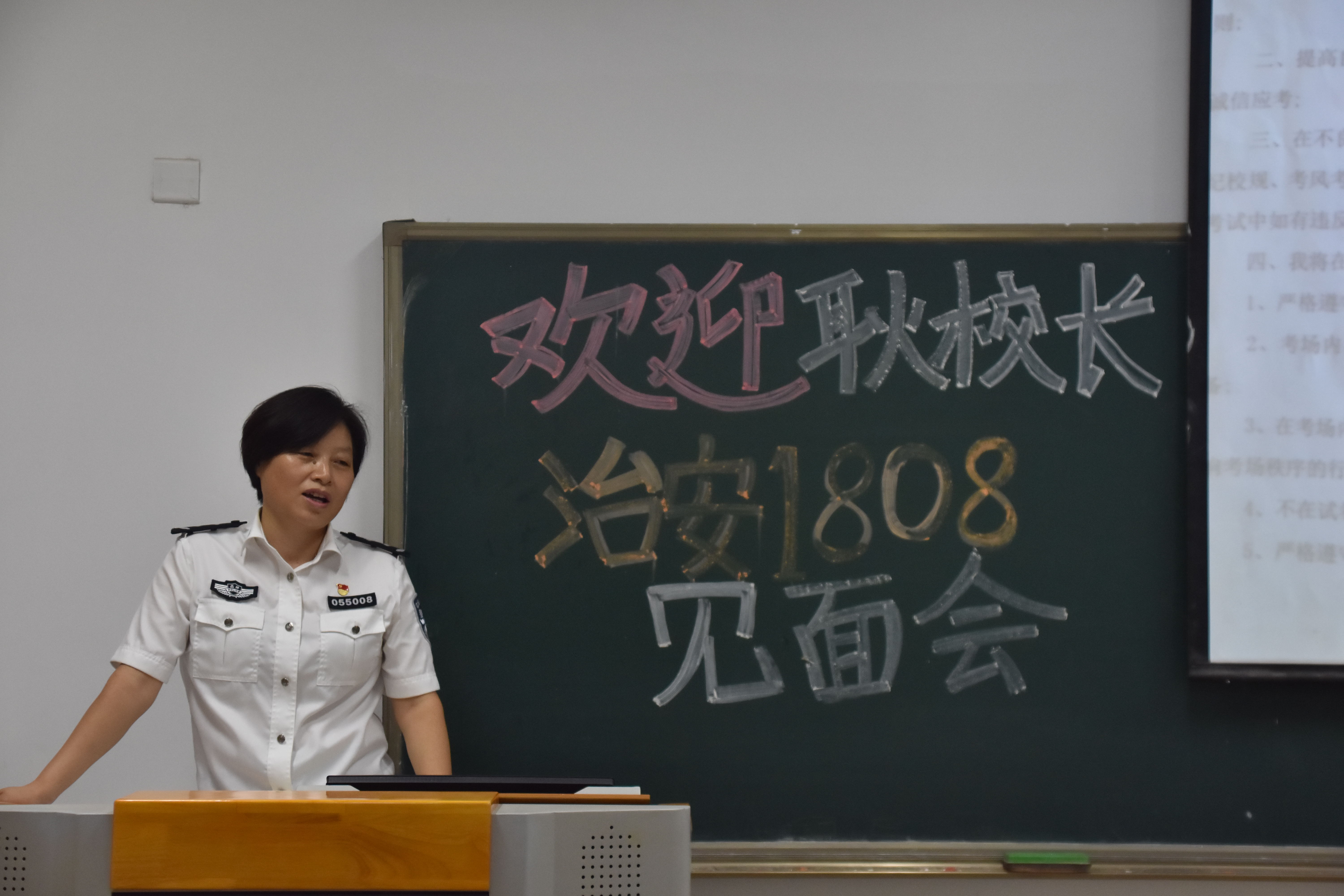 2019年6月27日15:00在教学楼107教室,副校长耿淑芬老师莅临治安学1808区队见面会。因期末考试临近,见面会以“诚信考试”为主题,耿校长为同学们从多方面多角度分析了大学学习生活。