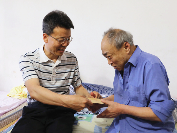 在老党员家中,王邱文书记表示,老党员在不同时期、不同岗位为学校发展作出了重要贡献,学校要在政治上、思想上、生活上切实帮助老党员解决实际困难和问题,尤其要为生活困难的老党员排忧解难,做好扶助工作。