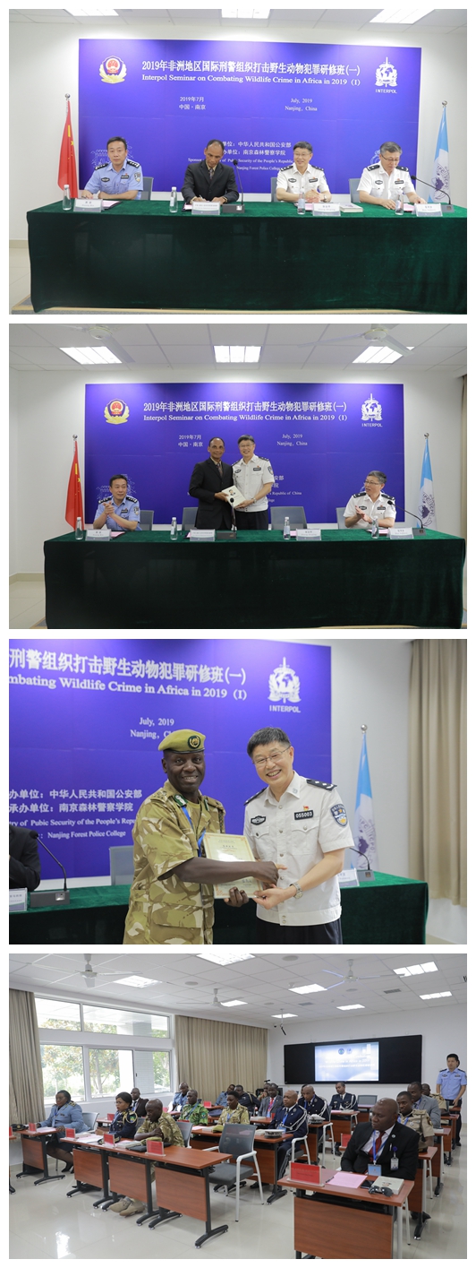 7月27日下午,我校举行2019年第一期非洲地区国际刑警组织打击野生动物犯罪研修班结业典礼。校党委委员、常务副校长张治平,马达加斯加国际刑警中心局局长卢克·赫夫,警官培训中心常务副主任包学文、副主任黄斌,研修班全体学员出席结业典礼。