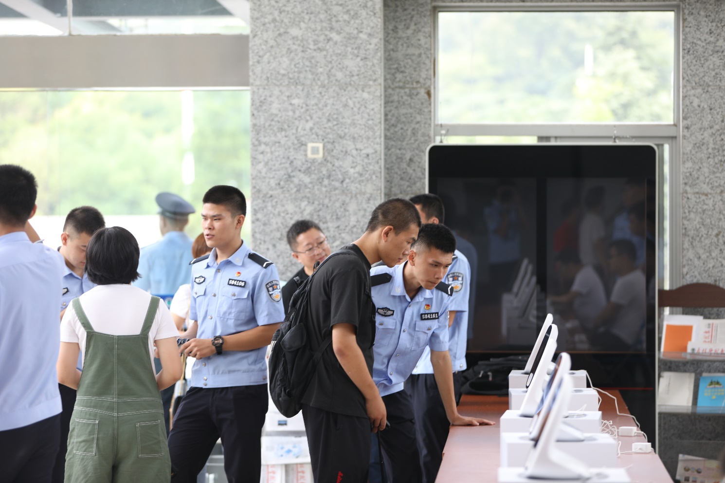 王邱文书记与新生和家长亲切交谈,询问他们报到情况,对新生圆梦南森表示祝贺并寄语未来。在观看入学报到统计大数据实时呈现时,张高文校长表示要响应科技兴警要求,切实提升信息化工作手段,支撑和引领教学科研、管理服务。