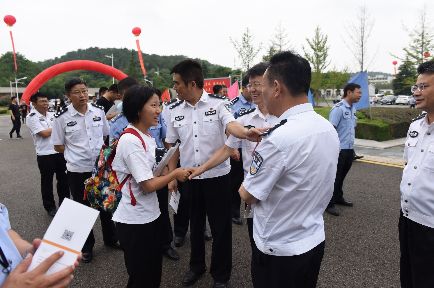 报到现场,校领导见到不久前被人民日报报道的特警19级新生韩新叶,对她以一份器官捐献志愿登记卡作为自己18岁的特殊成人礼的事迹表示高度赞扬。在报到现场的人群中,校领导遇到几位往届南森校友送子女前来报到,驻足交流,高度评价校友对母校的信赖和支持。