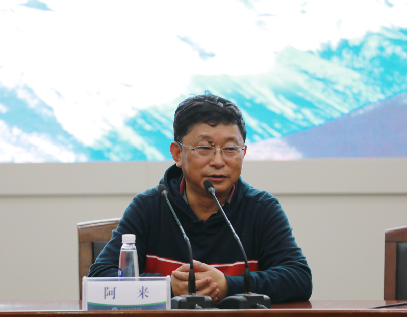 会上,阿来为师生们讲述了《攀登者》这部作品的创作初心和过程。“我写《攀登者》就是写精神,写中国人为什么一定要去攀登珠峰。我是写上世纪六七十年代的登山,那时是我们自古以来首次用科学的方式对待我们的山川河流。当时是在国家极其困难的时候,大部分中国人饭都吃不饱,在那样一个情形下,攀登珠峰几乎是一件不可能的事情—这才是激发我本人兴趣的地方……人的意志、国家的力量让这种不可能最后变为可能,彰显了英雄主义精神。”在谈到这部作品的写作宗旨时,阿来这样说。