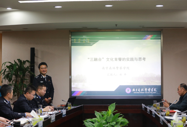 林平副书记副校长从探求公安院校大学文化的特质、构建“三融合”文化育警体系和公安院校校园文化建设的思考三个方面作了题为《“三融合”文化育警的实践与思考》的专题汇报。