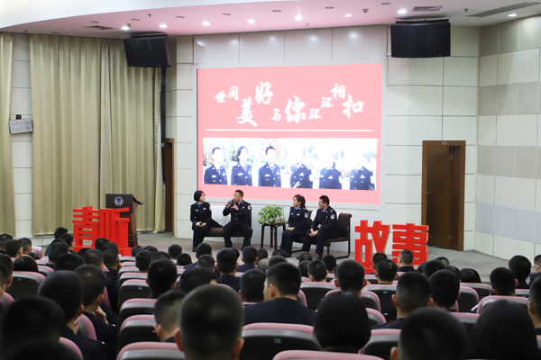 在认真倾听了六位主讲人分享的故事后,同学们踊跃发问。六位警官结合自身工作经验与心得进行了认真解答,消除了同学们的疑惑,增强了同学们对警察职业的认同感和自豪感。现场互动气氛热烈,掌声不断,在问答之间传递着“忠诚铸警魂、担当护平安”的正能量。