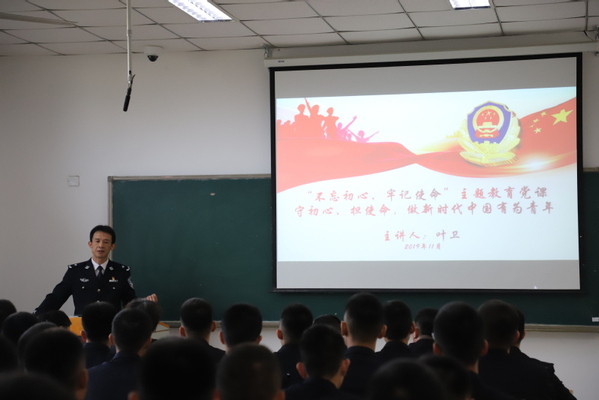 11月13日,根据学校党委“不忘初心、牢记使命”主题教育的工作要求,党委委员、副校长叶卫为侦查学院师生讲授精心准备的题为“守初心、担使命,做新时代中国有为青年”的主题教育专题党课。侦查学院全体学管教师、侦查学1801区队全体学生参加。