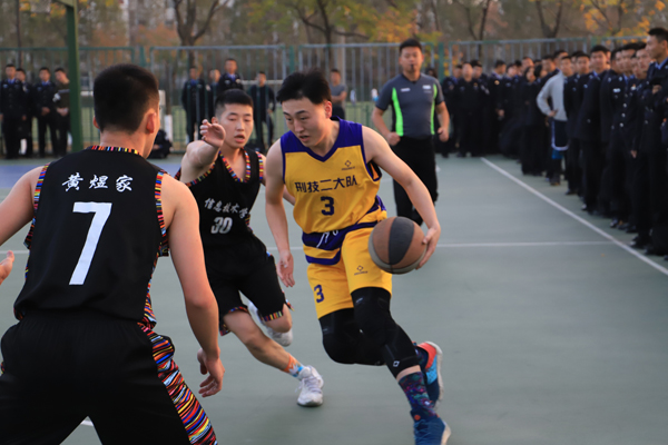 哨声一响起,双方立刻投入比赛,展开激烈角逐。信息大队先发制人,连续快攻,率先取得领先优势,但刑技二大队不甘落后,奋起直追,默契的传球配合展现了球员们丰富的比赛经验,刑技二大队更是凭借接连几个精准的三分球将比分变为30:15,现场的气氛急剧升温,一阵阵喝彩与呐喊此起彼伏。精彩的镜头不断上演,这边一个潇洒地断球转身,那边一个快速回场防守。在下半场的比赛中,双方你来我往,比分交替领先,比赛一度陷入了胶着状态。信息大队不断缩短与刑技二大队的比分差距,不抛弃不放弃,一次又一次地突围,努力地抢夺篮板,最终实现了翻盘逆转以43:38赢得了比赛,拿到了决赛的资格。
