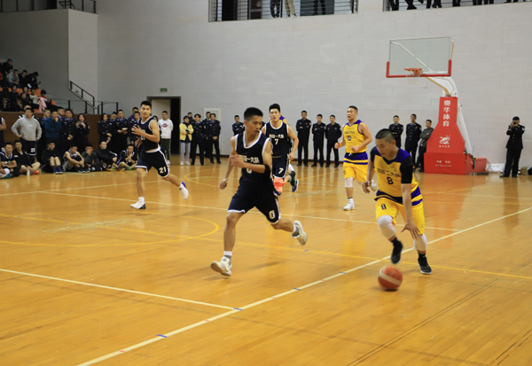 竞争更为激烈的是冠军争夺赛。在第一节比赛进行的过程中,治安二大队在一开始时便取得了三分的优势,但随着信息大队球员的不断努力,比分开始出现反转。第一节结束后,信息大队以10:3的比分领先治安二大队。比赛气氛在双方进攻中不断迈向高潮,两个大队的比分也一度接近,每当进球时,场内便会传来阵阵的掌声和欢呼声。双方队员在赛场上都不断发挥敢打敢拼的精神,治安二大队也多次抢下篮板并发起进攻,但由于命中率较低,多次投篮没有进入篮筐内,比分还是相差了一些。最后,终场哨声吹响,信息大队以45:40的比分赢下了治安二大队,获得了本届“警盾杯”篮球联赛的冠军,治安二大队荣获亚军。