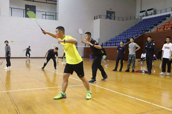 上午进行的是小组赛和淘汰赛,各大队秉承“友谊第一,比赛第二”的原则,在警体馆里公平竞技,加油声此起彼伏。赛场上,选手握紧球拍,聚精会神,和自己的搭档相互鼓励,拿下一分,激动击掌庆祝,失掉一分,拍拍肩膀继续拼搏。同学们展现实力的同时以球会友,赛后大家握手表达友谊。经过激烈比拼,信息大队、治安二大队、刑技一大队在上午的比赛中脱颖而出,进入下午的冠军争夺赛。