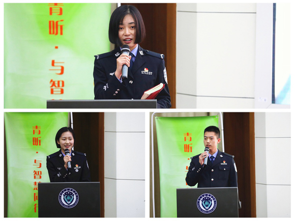 读书分享会分为两轮,在第一轮主题讲演中,9名同学分别围绕《习近平谈治国理政》《毛泽东选集》《唐吉诃德》《平凡的世界》《朝花夕拾》《深蓝的故事》《活着》《解忧杂货店》《小王子》分享了书中的故事、哲理以及带来的启示,并结合自身成长经历述说了所感、所悟与所获。通过阅读,他们与历史上的那些伟大灵魂深入交谈,并借此把人类创造的精神财富“占为己有”,得到了灵魂上的洗礼。经过第一轮的角逐,侦查学1805区队吉美伊等6名同学进入到第二轮即兴讲演阶段。在限时90秒内,6名同学分别围绕“生活、实践、亲情、勤奋、磨难、孤独”等主题进行了阐述,分享了他们的感受和故事。根据两轮总分排名,侦查学1805区队吉美伊荣获一等奖,邢技1703区队王一凡、网安1804区队赵博婧荣获二等奖,治安学1706区队朱思睿、特警1802区队杨震、视听1702区队龚昆鹏荣获三等奖,公管1703区队翟杨宁、侦查学1804区队王彦洁、治安学1803区队叶龑啸荣获优秀奖。