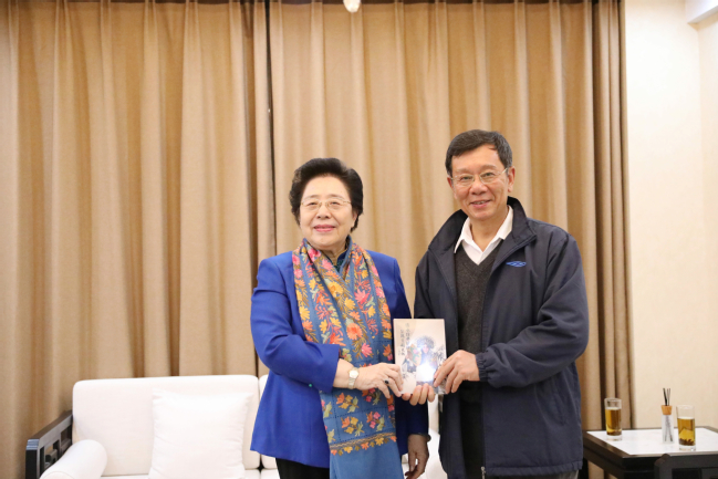 在校期间,江泽慧主任向我校赠送专著,党委书记王邱文、校长张高文、老校长苏惠民代表师生接受捐赠。