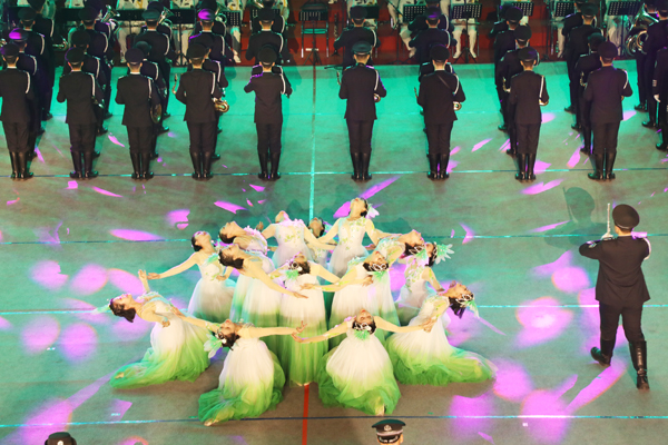 我校的演奏曲目是《青春为祖国燃烧》,由《钢铁洪流进行曲》《茉莉花》和《没有共产党就没有新中国》等构成,将气势磅礴与温婉柔情结合的恰到好处,飘动的五星红旗、铿锵有力的步伐、变换多样的队形、轻盈曼妙的舞姿在多种乐器声的碰撞中彰显着南森青年昂扬向上的精神面貌和拼搏奋进的初心使命,赢得了全场观众的热烈掌声,获得了其他参演院校的广泛好评。