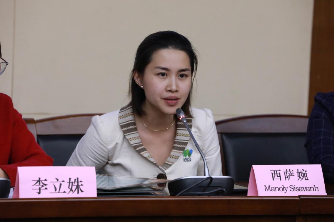 接着,老挝项目副主任西萨婉(Manoly Sisavanh)女士进行发言,感谢学校邀请她来参加本次分享会,对三名见习生在老挝的工作进行赞扬。她表示老挝虽然面积很小,但是由于特殊的地理位置,如今成为野生生物非法贸易的中转国,希望警校学生掌握更多专业知识,为野生生物的保护作出贡献,同时也希望明年有更多的见习生能参加这个项目。