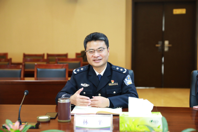 会上,林平对沈志宏一行的到来表示欢迎并结合宣传片对我校学科、专业建设等基本情况作简要介绍。林平表示安徽公安职业学院此行是为我校传经送宝之行,希望借此契机,创造更多的机制、平台,促进两校交流合作。