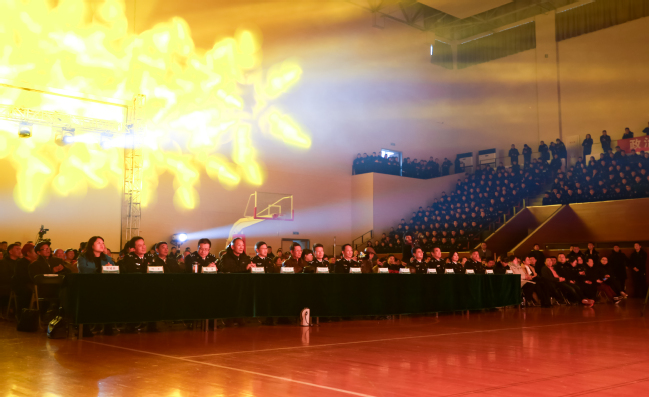 1225日下午,为弘扬社会主义核心价值观,唱响爱国主义主旋律,激发我校广大教职工爱国爱党爱校的热情,展现广大教职工团结向上、爱岗敬业的精神风貌,营造健康和谐的校园文化氛围,由组织处、宣教处、工会、团委联合举办的南京森林警察学院建功新时代谱写新篇章”2020年师生迎新联欢会在警体馆举行。党政领导王邱文、张高文、张治平、林平、陶珑、吉小林、叶卫、耿淑芬、冯斌,老领导苏惠民、侯文权、张南群、杨玉珙,交通银行有关负责人,全体教职工,离退休老同志及千余名学生齐聚一堂,载歌载舞,喜迎新春。
