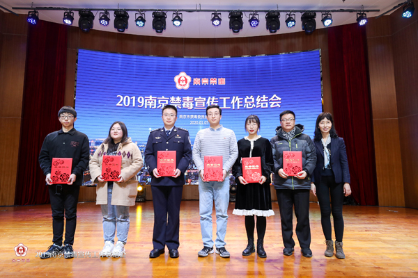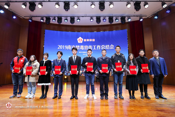 1月5日下午,2019南京禁毒宣传工作总结会在南京师范大学仙林校区广乐楼音乐厅召开。省禁毒办常务副主任、省厅禁毒总队总队长张波应邀出席活动并为先进单位颁奖。市禁毒委副主任、公安局党委委员曹存福,市禁毒办副主任、禁毒支队支队长仲军,市教育局宣德处处长完进,市公安局禁毒支队副支队长刘庆锋,团市委副调研员陶涛及南京师范大学相关部门负责同志参加活动。各区禁毒办副主任、禁毒民警和禁毒社工代表及高校禁毒志愿者联盟代表共300人参加活动。总结会上,因一年来在禁毒宣传工作中的突出表现,学校被评为“禁毒宣传优秀组织”,橄榄绿青年志愿者服务队队长、网安1702区队的陈惠军同学被评为“禁毒宣传优秀志愿者”。