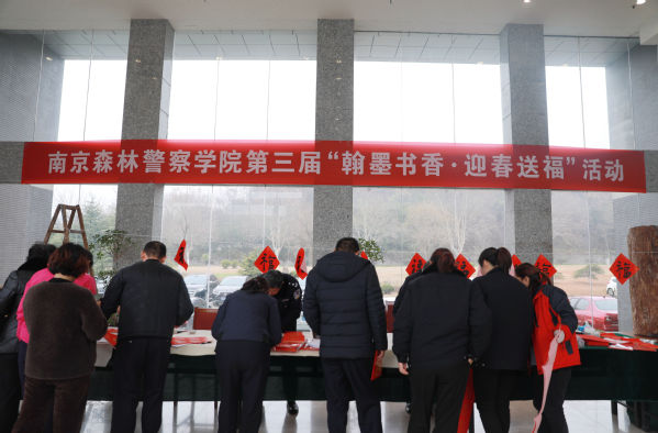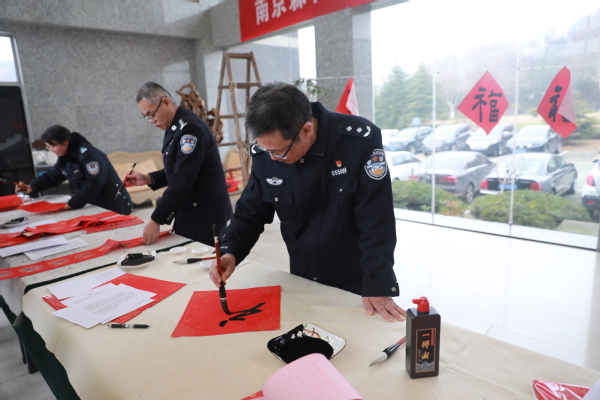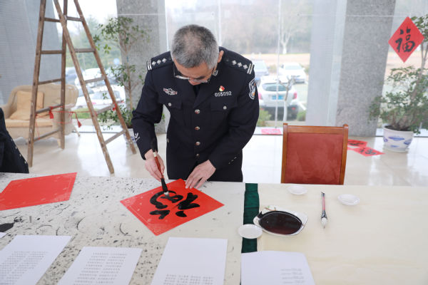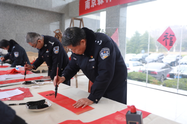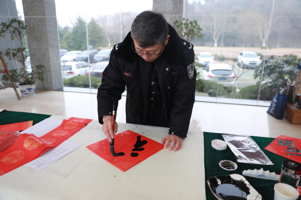 活动现场气氛活跃,张治平、陶珑、包学文、侯召斌、马沁妍等书法爱好者挥毫泼墨,手起笔落之间,一幅幅精美的春联,一个个喜庆的“福”字跃然纸上。此次活动反响热烈,络绎不绝的教职工前来领取春联和“福”字,为即将到来的新春佳节添福添喜气。公安部机关党委赠送的春联也同时发放给了到场参加活动的教职工。