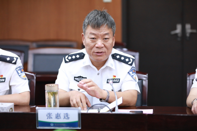 7月14日,山西警察学院党委副书记、院长张惠选,党委副书记李亚尼,党委委员、副院长苏天照及相关部门一行到我院交流座谈。学院党委副书记、院长张高文,党委副书记、副院长林平,党委委员、副院长吉小林出席会议相关职能部门和教学单位负责人参加会议。