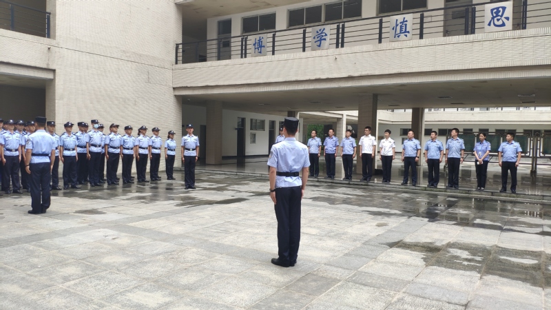 7月27日下午,副院长吉小林,学生工作处副处长(主持工作)许在华,各学院党总支副书记、各大队大队长,学生工作处警训科金鑫等来到训练场,检查学生教官团暑期训练情况。