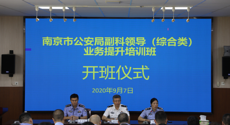 9月7日上午,南京市公安局副科以上领导(综合类)业务提升培训班在我校花园路校区开班,南京市公安局政治部组教处副处长何奕、南京森林警察学院警官培训中心常务副主任包学文出席开班典礼,南京市公安局组教处科长级干事任龙腾主持开班典礼。