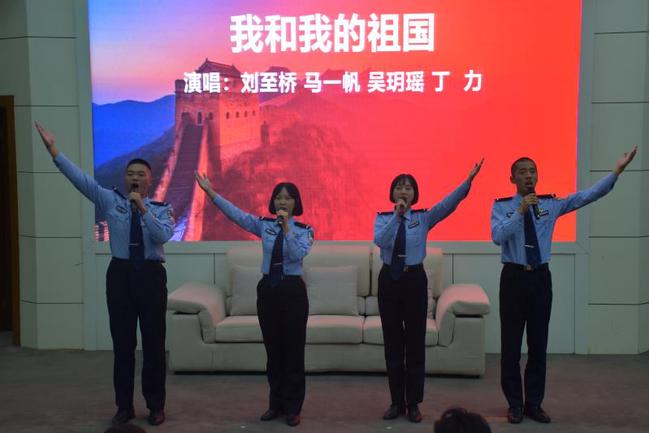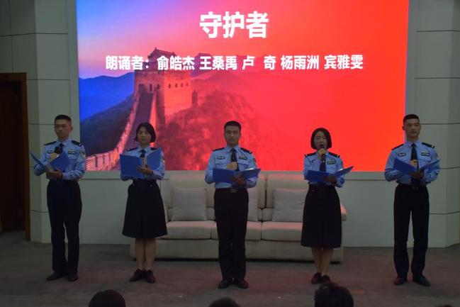 本次主题活动中,视听1902卢奇、杨雨洲、王桑禹、俞皓杰和刑技2001宾雅雯为工作在一线的舟山市公安干警带来诗朗诵——《守护者》,同学们的朗诵饱含深情、抑扬顿挫,歌颂了基层公安干警的无私奉献;刑科院男生小合唱带来了《祖国不会忘记》,唱出了为公安工作默默奉献的基层民警的心声;视听2001马一帆、刘至桥,刑技2001丁力、吴玥瑶真情演唱《我和我的祖国》,表达了南森学警对祖国的赤子之情。