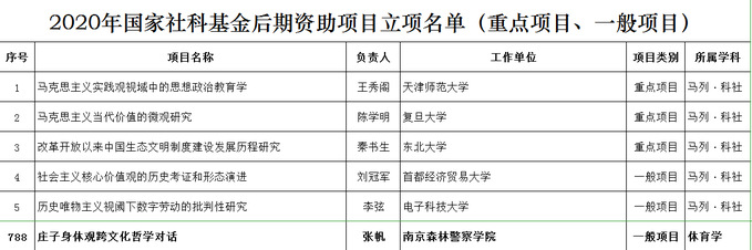 日前,2020年度国家社会科学基金后期资助项目经受理申报、通讯初评、会议评审、网上公示等程序和全国哲学社会科学规划领导小组批准,正式公布了立项课题名单。我院张帆老师申报的《庄子身体观跨文化哲学对话》获得立项资助