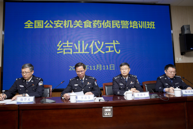2020年11月11日下午16:20,全国公安机关食药侦民警培训班结业仪式在我院花园路校区顺利举行。公安部食品药品犯罪侦查局党委委员、副局长李春节同志,南京森林警察学院常务副院长张治平同志,警官培训中心主任包学文同志出席结业仪式。结业仪式由公安部食品药品犯罪侦查局基础工作处二级调研员陈国保同志主持。