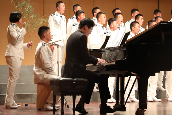 晚7:15,南京文化艺术中心座无虚席,下半场演出准时开始。本场演出共表演了《蓝色多瑙河》《我爱你中国》《小河淌水》等18首中外名曲。我院合唱团演唱了两首曲目,分别是《相见欢》和《沧海行》。同学们以饱满的精神状态、投入的情感表达、优美的和声赢得了热烈的掌声。