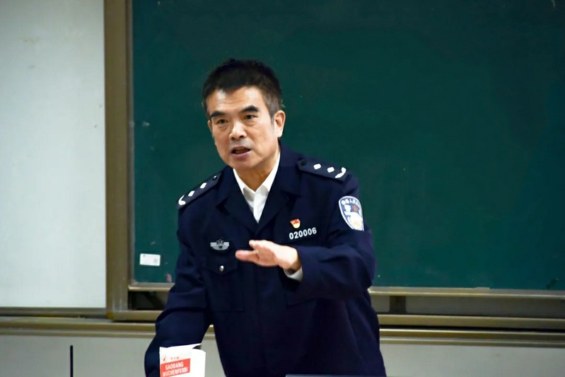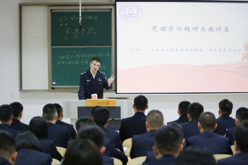 吉小林副院长围绕新时代公安“四个铁一般”精神,即铁一般的理想信念、铁一般的责任担当、铁一般的过硬本领、铁一般的纪律作风,结合理想信念、入党动机、警务化管理、警务知识学习等方面,进行了深入浅出的生动讲解。