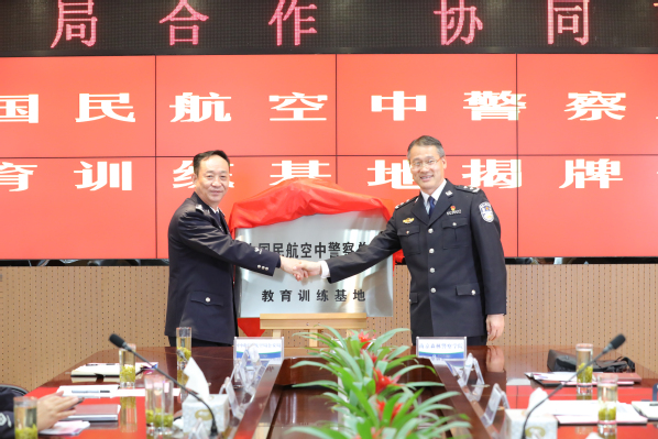 仪式上,魏亚军局长与张高文院长代表局校双方共同签署战略合作框架协议。魏亚军局长与王邱文书记共同为“公安部十五局中国民用航空局公安局教育训练基地”揭牌,薛荣国总队长与张高文院长共同为“中国民航空中警察总队教育训练基地”揭牌。林平副书记以《培养优秀空中警察人才 全面服务民航公安实战需求》为题,从回望携手走过历程、回顾人才培养工作、回报信任再谱新篇三个方面详细汇报了我院空警人才培养及科技服务情况。