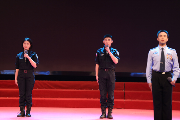 作品《旗》凝结了众位主创人员的心血,大胆创新,融合了多元的警察特色元素,以警旗的红、蓝色为线索,通过演员们生动细致地表演,诠释了南森学子牢记训词精神、擎旗奋进铸忠诚的使命与担当,展现出了当代公安院校学生剑胆琴心的学警风采,彰显了人民警察“对党忠诚、服务人民、执法公正、纪律严明”的意志品质,讴歌了年轻学警“不负青春、不负韶华、不负时代”锻造成为“四个铁一般”的公安铁军的矢志不渝的追求和使命。
