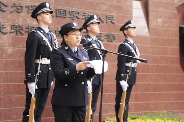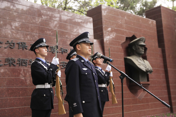活动由学生工作处副处长许在华主持。全体成员默哀一分钟,以表达对公安英烈的无限哀思与怀念。国旗护卫队的同学迈着整齐的步伐,向公安英烈敬献花篮。保卫处处长罗元方带领全体师生重温《人民警察入警誓词》:我志愿成为中华人民共和国人民警察,献身于崇高的人民公安事业,坚决做到对党忠诚,服务人民,执法公正,纪律严明,矢志不渝做中国特色社会主义事业的建设者、捍卫者,为维护社会大局稳定,促进社会公平正义,保障人民安居乐业而努力奋斗!誓言掷地有声,表达了师生们继承英烈遗志、传承英烈精神的决心。