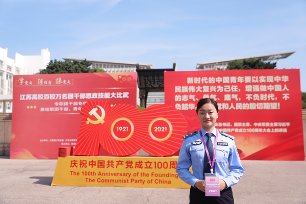 7月,由共青团江苏省委联合江苏省委教育工委、江苏省委党史工作办公室共同主办的学习宣传贯彻习近平总书记“七一”重要讲话精神学习会暨“学党史、强信念、跟党走”江苏高校百校万名团干部思政技能大比武专职团干部和兼挂职团干部、青年教师专项赛集中宣讲课在南京师范大学仙林校区举行。本次大赛自6月启动以来,经过校内推荐和省赛初赛评审,共有来自109所高校的260余名专职和兼挂职团干部、青年教师入围省级决赛。我院教师团干侦查一大队分团委书记王丽荣获专职团干专项赛二等奖。