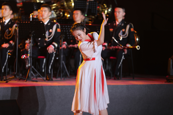 第四篇章“奋进·守正创新”,《我的祖国》前奏悠扬的钢片琴声响起,乐声渐入佳境,苗海楠老师与闫加良同学清亮高昂的歌声,唱出了对祖国无限的祝福。一阵急促鼓声,乐声急转,气势磅礴的《钢铁洪流进行曲》响起,激起了大家无限豪情壮志,以铿锵有力的强音将音乐会的气氛推向高潮。