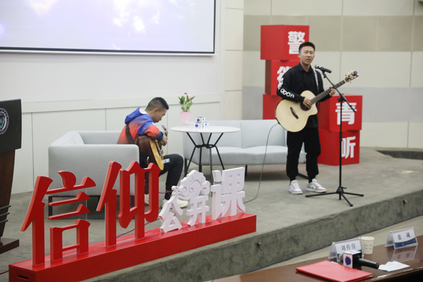 分享会上,吉他协会带来了吉他弹唱《New Boy》,婉转的歌声带动了全场的气氛,同学们随着节奏拍起手来,余音绕梁。