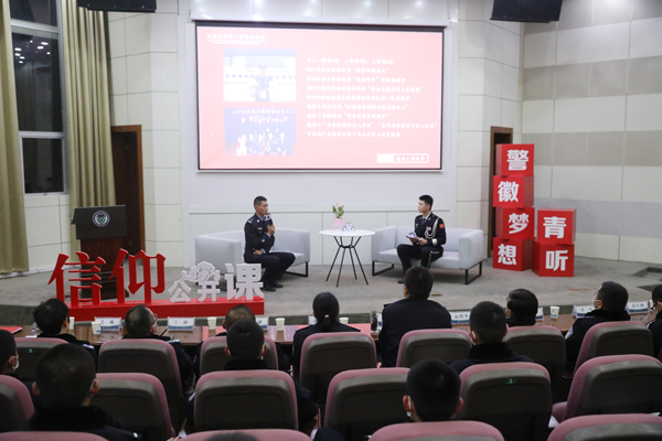刘传佳在分享会中向师弟师妹们讲述了日常工作中的点点滴滴,武装巡逻、反恐防暴、应急处突、抓捕犯罪嫌疑人……其中有许多触目惊心的瞬间给同学们留下了深刻的印象,也让同学们从中学到了许多优良品质,受益匪浅。