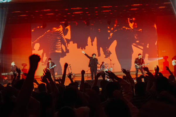 演唱会在一首澎湃的《华年》中拉开帷幕,每个音符都迸发着青春的活力,瞬间点燃现场氛围。随后,鹿先森乐队演唱了新专辑《滔滔》中的《生之河》《人生幕幕》《希望你的明天比昨天更自由》等作品。在我院合唱团与鹿先森乐队合作演绎的曲目《我想抵达的你》中,20名同学干净质朴的演唱与郭倍倍深情款款的演绎相互交融,用独特的音乐魅力触动了在场师生。