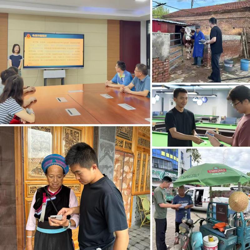 怀揣着守护桑梓安宁的初心,“无诈社区安全护卫队”相隔千里的9名学子,分别深入江苏宿迁、山东潍坊、云南大理、广东佛山、内蒙古赤峰五省(自治区)的社区街巷、田间地头、草原牧场。在筑牢基层反诈防线的同时,同学们积极探索创新路径:以乡音搭建沟通桥梁,制作《涉农骗局鉴别手册》等本土化材料,借助国家反诈中心APP平台等工具,手把手教居民安装“电子防护盾”、屏蔽境外诈骗来电,同时开展跨区主题宣讲。团队致力于连接专业知识与民生需求,在15天的实践中探索出“本土化+专业化”反诈新模式,让反诈知识变得可懂、可用、可传播,为家乡织就长效安全防线,以青春之力护民“钱袋”,让防诈之声传街巷间。
