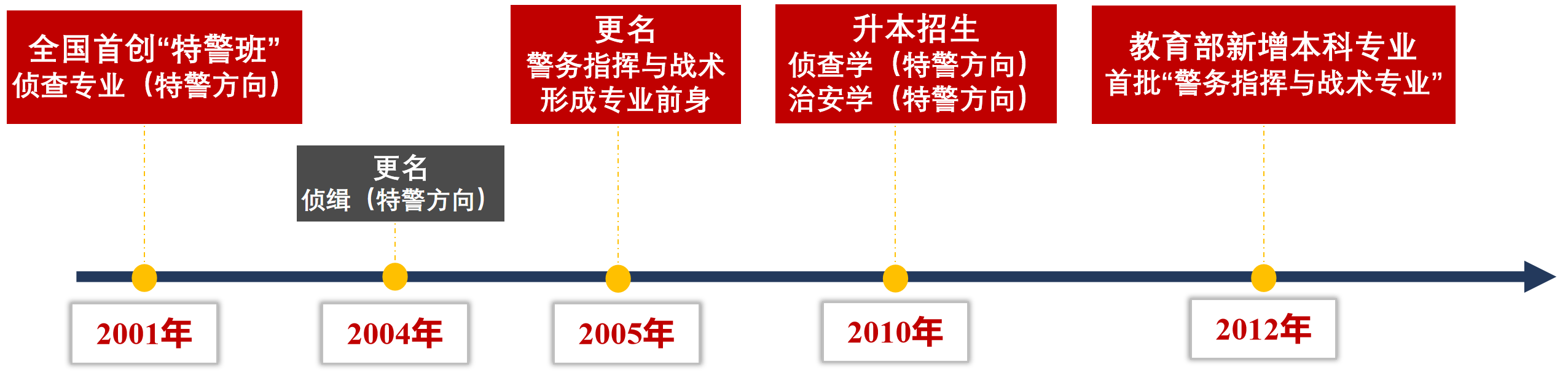 自2001年首创全国首个公安特警班以来,历经多次专业名称调整与办学层次提升,于2012年成为教育部首批获批“警务指挥与战术专业”的公安院校,2021年获批国家级一流本科专业建设点。